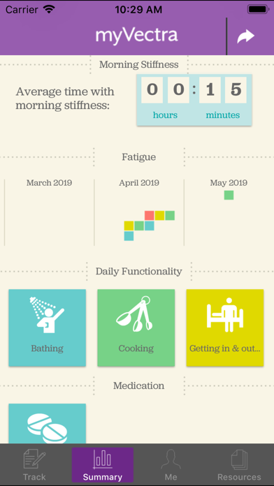 Track it. Show it. Feel better. myVectra™! Built for people living with rheumatoid arthritis (RA), myVectra is a revolutionary app which lets you track your RA, create visual snapshots of your data, and communicate about your RA like never before. Now you can track what is important to YOU, whenever, wherever. “How are you doing?” It’s not always an easy question to answer, particularly when you’re living with and managing an ever-changing disease like RA. We all know that with RA, symptoms can change from month-to-month…even day-to-day. With myVectra, you can generate a visual summary report of your tracked data so you and your doctor can see how you’re doing…and how things have changed since your last doctor visit! Your doctor needs to know how you’re doing to treat your RA and help you feel better. More effective than a journal. Prettier than a spreadsheet. Say it with myVectra!