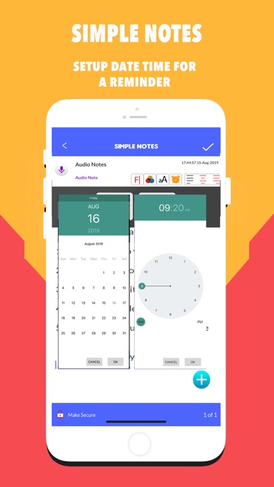 SimpleNotes awesome for daily life, whether your at work, school, meetings, lectures even at home. Simple Notes its a free App but some in app purchase maybe required "remove Ads, unlock full version" Type, voice or video record, your recording will be saved in list you can listen and watch any time, quick easy simple to use app. ------------- SimpleNote will help you create and categorize your day to day notes. FEATURES 1- Multiple type of notes "Text, Audio, Video, Photo, List 2- Add multiple pages for each Note 3- Set a reminder for your notes 4- Change Font : color, size, type 5- Share your notes and many more # will assist you to sort out your notes. # with high quality audio recordings. # Pause and continue your recording session # Play Back recordings while typing # Change color font and size of you note