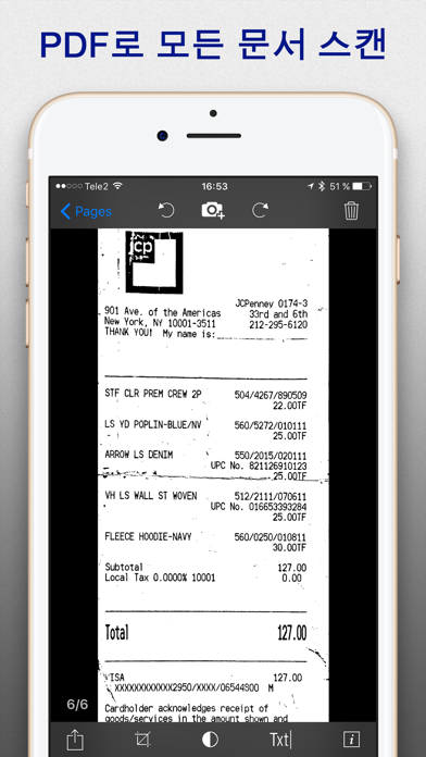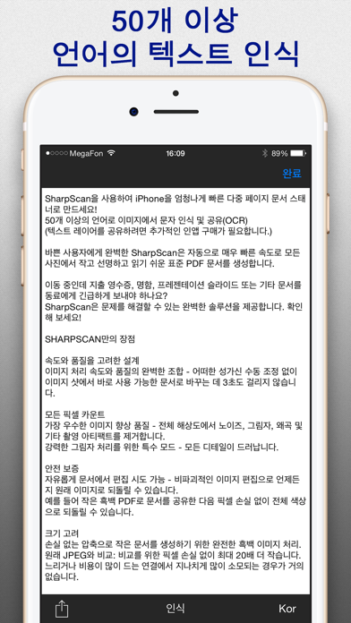 SharpScan을 사용하여 iPhone을 엄청나게 빠른 다중 페이지 문서 스태너로 만드세요! 50개 이상의 언어로 이미지에서 문자 인식 및 공유(OCR) (텍스트 레이어를 공유하려면 추가적인 인앱 구매가 필요합니다.) ***** 정말 폰으로 pdf만들기 정말 편해졌어요~~ (트윗...) ***** 어느각도에서 찍어도 모서리만 나오면 자동으로 스캔 이미지 만들어주어서 너무 편리하게 잘 쓰고 있습니다~!!! 앞으로 좋은 어플 많이 만들어 주세요~!!! ^-^* (뽀야남편) 바쁜 사용자에게 완벽한 SharpScan은 자동으로 매우 빠른 속도로 모든 사진에서 작고 선명하고 읽기 쉬운 표준 PDF 문서를 생성합니다. 이동 중인데 지출 영수증, 명함, 프레젠테이션 슬라이드 또는 기타 문서를 동료에게 긴급하게 보내야 하나요? SharpScan은 문제를 해결할 수 있는 완벽한 솔루션을 제공합니다. 확인해 보세요! SHARPSCAN만의 장점 ◆ 속도와 품질을 고려한 설계 이미지 처리 속도와 품질의 완벽한 조합 - 어떠한 성가신 수동 조정 없이 이미지 샷에서 바로 사용 가능한 문서로 바꾸는 데 3초도 걸리지 않습니다. ◆ 모든 픽셀 카운트 가장 우수한 이미지 향상 품질 - 전체 해상도에서 노이즈, 그림자, 왜곡 및 기타 촬영 아티팩트를 제거합니다. 강력한 그림자 처리를 위한 특수 모드 - 모든 디테일이 드러납니다. ◆ 안전 보증 자유롭게 문서에서 편집 시도 가능 - 비파괴적인 이미지 편집으로 언제든지 원래 이미지로 되돌릴 수 있습니다. 예를 들어 작은 흑백 PDF로 문서를 공유한 다음 픽셀 손실 없이 전체 색상으로 되돌릴 수 있습니다. ◆ 크기 고려 손실 없는 압축으로 작은 문서를 생성하기 위한 완전한 흑백 이미지 처리. 원래 JPEG와 비교: 비교를 위한 픽셀 손실 없이 최대 20배 더 작습니다. 느리거나 비용이 많이 드는 연결에서 지나치게 많이 소모되는 경우가 거의 없습니다. ◆ 스마트한 작업 수동 조작 없이 완전한 자동 문서 경계 감지, 자르기 및 관점 수정. 물론 수동 조작도 가능합니다. ◆ PDF 파워 업계 표준 PDF 문서를 만듭니다. - 문서 및 페이지를 관리합니다: 이동, 복사 및 병합. - 암호로 문서를 보호합니다. - 자동 페이지 크기 및 방향 감지. - 긴 영수증 등에 맞게 유연하게 조정 가능한 사용자 지정 페이지 크기. ◆ 더 이상 수동 작업 필요 없음 완전히 자동으로 이미지 처리 및 향상 - 지루한 수동 조정이 필요 없습니다. ◆ 대형 볼륨 작업 이동 중에 여러 페이지 문서를 스캔하고 관리하기 위해 일괄 처리의 속도와 편리함을 활용합니다. ◆ 간편한 공유 이동 중에 문서를 PDF 또는 이미지 파일로 공유합니다. 무료 버전에는 광고, 워터마크와 함께 생성된 스캔 문서가 있습니다. 언제든지 당사에 문의하고 제안 사항이나 문의 사항을 지원 팀 www.pixelnetica.com/support.html로 보내주세요. 가능하면 빨리 문의하신 사항에 답변을 드리기 위해 최선을 다하겠습니다. TWITTER: @Pixelnetica FACEBOOK: www.facebook.com/Pixelnetica YouTube: www.youtube.com/user/Pixelnetica