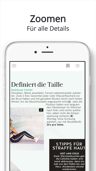 SHAPE, das ganzheitliche, monatliche Lifestyle- und Wellness-Magazin für Frauen, gibt es nun auch für unterwegs für Ihr Tablet oder Smartphone. Das SHAPE ePaper bringt Ihnen die gleiche Themenvielfalt des gedruckten Magazins nach Hause oder auch in den Urlaub. Mit dem ePaper abonnieren Sie viele Informationen zu den Kernthemen Fitness, Food, Health, die Lust auf Bewegung und einen gesunden Lebensstil machen. Aber auch Beauty und Fashion kommen in SHAPE nicht zu kurz. Suchen Sie im PDF gezielt nach Ihren Wunschthemen, zoomen Sie auf interessante Details oder blättern Sie klassisch weiter. So macht Sport auch digital mehr Spaß. SHAPE ist das Magazin für Frauen, die sich für Sport, Fitness und Ernährung interessieren. Sie finden verschiedene Themen aus dem Sport und Tipps zum Thema Gesundheit und zu gesunder Ernährung. THEMEN • Sport • Gesundheit • Mode • Ernährung • Schönheit • Psychologie • Wellness • ausführliche Trainingsanleitungen für Anfänger und Fortgeschrittene FEATURES • Alle Magazine als ePaper • Einzel- und Abokäufe • Kostenlose Vorschau jeder Ausgabe • Gespeicherte Ausgaben offline lesen • Lesemodus mit Zoom-in und -out • Lesezeichenfunktion • Navigation durch Inhaltsverzeichnis • Suchfunktion über alle Ausgaben und alle Inhalte Wir wünschen Ihnen viel Spaß beim Lesen von SHAPE! Schauen Sie auch gerne auf unserer Webseite und unseren Social-Media-Profilen vorbei: • www.wunderweib.de/shape • www.facebook.com/shapemagazin/ Abonnements und Einzelkäufe Unsere Nutzer können über In-App-Käufe sowohl einzelne Ausgaben als auch Abonnements erwerben. Bitte beachten Sie die folgenden Hinweise: • Ihr Abonnement (im Folgenden auch Abo) verlängert sich automatisch, außer die automatische Verlängerung wird mindestens 24 Stunden vor dem Auslaufen des aktuellen Abos ausgeschaltet • Innerhalb der letzten 24 Stunden vor dem Auslaufen eines Abos werden Ihnen die Kosten für die Verlängerung abgebucht. Die Laufzeit und auch der Preis sind identisch mit denen Ihres Abos, welches zu dem Zeitpunkt aktuell ist • Sie können ihr Abo verwalten und die automatische Verlängerung ausschalten, indem Sie nach dem Kauf in Ihre Kontoeinstellung gehen • Eine Kündigung des aktuellen Abos ist während des Zeitraums des aktiven Abos leider nicht möglich. Dies beeinflusst nicht Ihre gesetzlichen Rechte • Jeder nicht genutzte Anteil eines kostenlosen Probe-Abos, falls angeboten, wird nach Abschließen eines Abos verfallen • Diese App bietet möglicherweise eine kostenlose Probe-Version an. Am Ende einer Probe-Phase wird im Anschluss der volle Preis eines Abonnements berechnet. Kündigungen müssen mindestens 24 Stunden vor dem Auslaufen des Zeitraums des Probe-Abos erfolgen, um eine Abbuchung zu verhindern. Weitere Information finden Sie unter folgendem Link: https://support.apple.com/de-de/HT202039 Das Abo wird die aktuelle Ausgabe beinhalten, falls diese nicht bereits gekauft wurde, sowie auch die zukünftigen Ausgaben. Der Preis wird von Ihrem iTunes-Konto abgebucht, sobald Sie den Kauf bestätigt haben. Die digitale Edition dieses Magazins beinhaltet keine etwaigen Extras oder Geschenke, welcher in der Print-Version enthalten sind. Während wir bestrebt sind, jegliche Extras oder Zusatzinhalte auch in der digitalen Version bereitzustellen, können wir dies jedoch nicht immer garantieren. Weitere Informationen finden Sie z.B. auch innerhalb der App in unserem FAQ-Bereich. Gerätekompatibilität Diese App ist ausgelegt für Geräte mit 64-bit-Prozessoren, oder höher. Ältere Geräte mit schwächeren Prozessoren, wie beispielsweise das iPad 1, 2 und das iPad Mini 1, 2 und die iPhones 3, 4 und 5 sind möglicherweise nicht in der Lage, diese App einwandfrei auszuführen. Nutzungsbedingungen: https://www.bauer-plus.de/agb Datenschutzhinweise: https://www.bauer-plus.de/datenschutz Sollten Sie weitere Fragen oder Anmerkungen haben, schreiben Sie uns gerne an [email protected]. Wir freuen uns über jedes Feedback über unser Magazin.