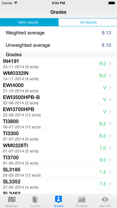 TUDirect allows students studying at the Technical University of Delft, to easily check information on the following items: - Check your grades and see your (weighted or unweighted) average in an instance. - Retrieve building information. - Check the map where buildings are located. - See course schedules. - Easily retrieve course information with staff details, amount of ECTS and more. - See your study progress with ease. From now on you won't need BlackBoard anymore to find your information, all you need is this app! note: logging in with your net id is required to see your grades and study progress. If you experience any problems with the app, please send an email to [email protected] so I can resolve the issue.