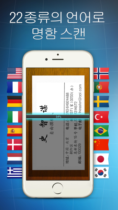 이 앱을 사용하면 당신의 iPhone으로 여러 가지 명함들을 빠르게 인식하고, 명함으로부터 연락처 정보를 가져와서 iOS 연락처 앱에 그대로 넣을 수 있습니다. LinkedIn, Salesforce, Evernote 앱과 완벽히 연동되며, 여타 CRM 시스템과도 호환성이 좋습니다. BCR은 iPhone TV 광고에도 등장한 바 있습니다. 무료 버전에서는 5장의 명함을 처리할 수 있습니다. 인앱 구매로 제한을 해제하면 무제한의 명함을 처리할 수 있습니다. "모바일에서 인맥 관리를 하려 한다면 마음에 들 수밖에 없는 앱" -TechCrunch "iPhone용 Business Card Reader는 동종의 다른 앱보다 탁월하다. 무료 앱은 아니지만, 다음에 명함을 스캔할 일이 생기면 확실히 제 값을 할 것이다." -IntoMobile "이제까지 나온 텍스트 스캐닝 앱 중 최고" -TouchMyApps Business Card Reader는 사업가, 전시회 담당자, 각종 박람회 참가자, 세일즈/마케팅 관련 직종 종사자를 비롯하여 정기적으로 인맥을 형성하는 분들에게 탁월한 도구입니다! 더 이상 수동으로 연락처 정보를 입력할 필요가 없어집니다. Business Card Reader가 중요한 연락처를 빠르고 간편하게 입력하고 관리할 수 있는 방법을 제공해 드리니까요. 한국어는 물론이고, 영어, 중국어, 일본어, 프랑스어, 독일어, 스페인어, 이탈리아어, 덴마크어, 네덜란드어, 그리스어, 노르웨이어, 포르투갈어, 스웨덴어, 터키어로 된 명함을 모두 지원합니다. Business Card Reader는 명함의 사진을 촬영한 다음, 텍스트 인식 기술을 사용하여 명함을 '읽어내고' iOS 연락처의 각 항목에 자동으로 적절하게 채워 넣습니다. 인식한 결과는 쉽게 체크하고 수정할 수 있습니다. 다음과 같은 기능을 제공합니다: • 각종 언어로 된 명함을 정확하게 인식 • 스마트하게 연락처 항목을 자동으로 채워넣기: 이메일, 전화번호, 웹사이트 등 • 연락처, 영업 기회 또는 고객 형태로 Salesforce로 내보내기 • Evernote로 내보내기 • .xlsx 문서로 내보내기 • 이미 사용하고 있는 CRM 시스템에 통합 가능 • New! BCR Cloud • 명함 홀더 기능으로 연락처를 검색 및 정렬하고, 이메일을 보내거나 바로 전화 걸기 • 손떨림 방지 이미지 캡처 • 백그라운드 이미지 처리. 여러 장의 카드를 스캔할 때 시간이 절약됩니다. BCR Cloud Archive - Yearly subscription - $16.99 - Payment will be charged to iTunes Account at confirmation of purchase - Subscription automatically renews unless auto-renew is turned off at least 24-hours before the end of the current period - Account will be charged for renewal within 24-hours prior to the end of the current period, and identify the cost of the renewal - Subscriptions may be managed by the user and auto-renewal may be turned off by going to the user's Account Settings after purchase - No cancellation of the current subscription is allowed during active subscription period BCR Cloud website: http://bcr.shape.ag SALESFORCE1 사용가이드와 통합: http://bit.ly/BCR-SF1 CRM 시스템 통합 방법 안내: http://bit.ly/BCRexport 좋은 인식 결과를 얻는 방법: 1. 명함을 평평한 표면에 올려놓으세요. 2. 무엇보다도 조명이 밝아야 합니다. 밝은 책상 램프나 태양광이 이상적입니다. 3. iPhone 의 경우 카메라의 초점을 명함에 맞추세요. 4. 장치를 명함 바로 위에 위치하도록 잡고, BCR의 뷰파인더 모서리에 명함을 최대한 일치시킵니다. 5. 화면을 탭하여 사진을 촬영합니다. 6. 인식이 끝나면 결과를 확인합니다. 7. 마지막으로 저장 버튼을 눌러 iOS 연락처에 추가하세요. 호환성 정보 • iOS 7 이상 • iPhone 4 이후 모델, New iPad 이후 모델 • iPad 2 에서는 사진 라이브러리에 저장된 명함 이미지만을 인식할 수 있습니다.