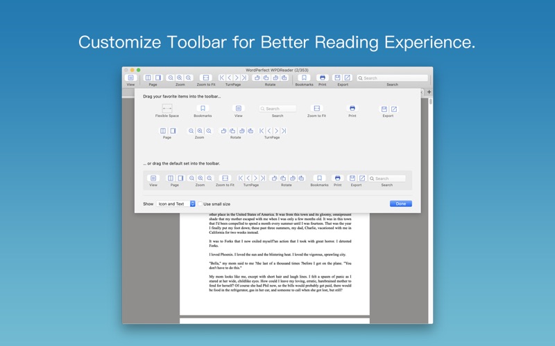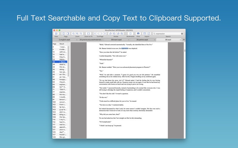 Enolsoft WordPerfect WPDReader is a fast WordPerfect WPD(Corel® WordPerfect® files) viewer for Mac users to easily open and read WPD files. WordPerfect Reader allows you to view WordPerfect documents page by page or read two pages at a time. Besides, you can add and manage bookmarks, search text easily, print files and export WordPerfect WPD to PDF, Text, RTFD, and images format for further edit or transmit. Features Highlight: * Open and view WordPerfect WPD files quickly and easily on Mac. * Support tab view, you could open and read multiple .wpd documents at a time. * Support full-screen reading. * Read WPD document page by page or read two pages at a time. * Zoom-in, Zoom-out, or Rotate options available. * Quick page-turning supported: Go to First Page, Previous Page, Next Page or Last Page. * Add and manage bookmarks: Group bookmark by files, and recent bookmark list for easy and faster access in future, rename or open directly. * Text styling, footnotes, bullet-point lists, line spacing, charts, and more are maintained. (depends on WordPerfect file version) * Sidebar with Table of Contents, Thumbnails and Search panel. * Text search in full text or copy text to Clipboard. * Print the opened WPD documents with one click. * Convert WordPerfect WPD document to more popular PDF, RTFD, and TXT format for easy sharing and editing. * Convert WordPerfect WPD documents to Image formats: JPEG, PNG, TIFF, BMP, and GIF etc. * Extract images from WPD documents to popular image formats like JPEG, PNG, TIFF, BMP, and GIF. * Convert or Extract the single page, all pages or the selected page of WPD documents. WordPerfect WPDReader supports documents from most versions of WordPerfect, including: WordPerfect for Windows 4-11, WordPerfect for Mac 1-3.5e, WordPerfect for DOS 6.2. Other WordPerfect file extensions supported: .wp, .wp7, .wp6, .wp5, .wp4 Like us on Facebook at https://www.facebook.com/Enolsoft Follow us on Twitter at https://twitter.com/Enolsoft Share us on Google+ https://plus.google.com/111924125797066738850/ To get the latest giveaway and updates news.
