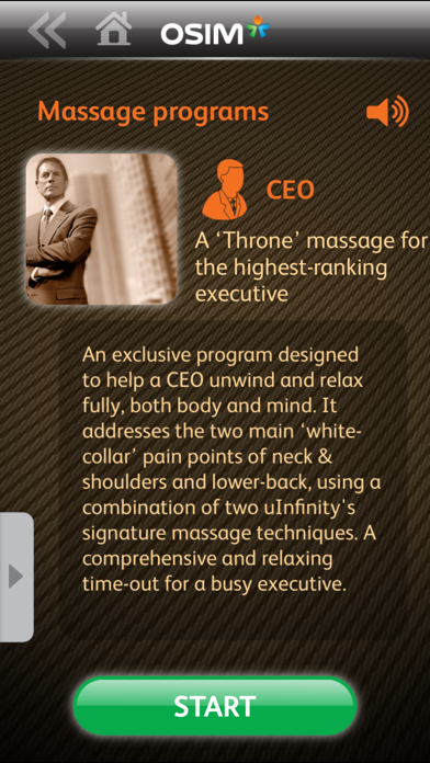 OSIM uInfinity and uInfinity Luxe, featuring the revolutionary Human-Smart Massage Technology, is the world’s only series of massage chairs that lets you download new massage programs. Leveraging the power of smart devices and mobile app technology, the OSIM uInfinity series of massage chairs has its very own App on iOS devices. Works with Apple iPod touch ®, iPhone ® and iPad ®, the OSIM uInfinity App collaborates with smart devices and lets you download the latest new massage programs into the uInfinity series of massage chairs, so that you can continuously enjoy the latest massage programs from OSIM, to satisfy your evolving massage needs. With this innovative download technology, you will have the widest choice of the most humanized massage programs ever, in a massage chair. Relax and be massaged like a CEO, be pampered like a Tai Tai, or soothe yourself after a game of golf. Through this same suite of ever-expanding Lifestyle Massage Programs, the uInfinity series of massage chairs fulfils the diverse needs of everyone in the family with endless massage pleasures. Beyond the ground breaking innovation of downloading new massage programs, the uInfinity App also provides: Seamless navigation and command of the uInfinity series of massage chairs from your smart devices Healthcare information on the current 19 and New uInfinity series Lifestyle Massage Programs Choice of 3 exclusive OSIM Ambient music for holistic relaxation (Relax, Balance and Energize Music) Complementary OSIM product information For more information on uInfinity and uInfinity Luxe massage chairs, visit www.OSIM.com/uInfinity