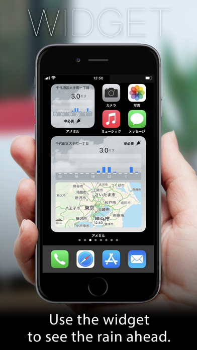 Amemil is an application that uses augmented reality (AR) and artificial intelligence (AI) to represent real-time rainfall information. The AI tells you when strong rain clouds are approaching, and you can check them as realistic images through the camera. * Main functions and features - Amemil has three modes: "2D" for map display, "3D" for AR display, and "Satellite Eye" for a bird's eye view of the weather from above. - Rainfall information is a composite of JMA radar data, with a resolution of 250m mesh, and is updated every 5 minutes. - Rainfall notification is a push notification with voice (Saori Onishi and Ari Ozawa) and radar video when rainfall is expected at registered points or at the current location within one hour. - In 2D mode, rainfall and lightning information is displayed in 13 shades, superimposed on the current location marker and map. - The AI learns from meteorologists' explanations and provides information on temperature and rainfall conditions in the user's vicinity, as well as forecasts for the future. - In 3D mode, rainfall information for a 10km radius is combined with the camera image as an animation of rain clouds, rain, and ripples in puddles. You can read the amount of rainfall by indicating the target direction. It can also play the sound of rain according to the intensity of the rain. - The "Satellite Eye" function allows you to view rainfall conditions across Japan, and by moving your iPhone, you can experience a realistic image as if you were looking at it from a satellite. - There is a demo mode that recreates heavy rainfall that has led to disasters in the past. - If you register as a member for 0.99 US dollars per month, you can use the rainfall forecast for the next 15 hours and GPS tracking mode. - You can post a video and image of the screen you are viewing with AR to SNS. If you post it, you can use the paid rainfall forecast and GPS tracking mode for 3 hours for free. * Support for widgets You can check the umbrella index, the rain forecast graph for the next 15 hours, and the weather radar map of the surrounding area on the home screen at any time. * Support for Siri shortcuts - Ask Siri, "What's the rain coming? and Amemil's AI will reply with the weather conditions in the area. * Support for Apple Watch - Rain radar is displayed on the map and a digital crown can be turned to see the forecast up to 60 minutes ahead. - Notifies you of approaching rain with animation. - Precipitation probability, satellite image, and precipitation forecast can be added to the watch face. * About Monthly Membership Price and duration of the monthly membership 0.99 US dollars / 1 month (counted from the date of application) / automatic monthly renewal You will be charged to your iTunes account. * Details of automatic renewal Your subscription will be automatically renewed unless you cancel the auto-renewal more than 24 hours before the end of your subscription period. You will be billed within 24 hours before your subscription expires. * How to check your membership status and cancel your subscription You can check your membership status and cancel your subscription from the following page. [ Settings app > Apple ID > Subscriptions ]. You can check the timing of the next auto-renewal and cancel/set the auto-renewal in this page. You can also check the timing of the next auto-renewal and cancel/set auto-renewal from iTunes. * Cancellation for the current month We do not accept cancellations for the current month for monthly memberships. [ Notes ] - If you want to use GPS tracking mode, please set location access as "Always allow" and "Turn on App background update". - The 3D mode is not available on iPod touch without a camera or a compass. Terms of Use and Privacy Policy http://www.amemil.jp/app/terms.htm Provided by Shimadzu Business Systems Corporation (JMA Forecasting Service License No. 65)
