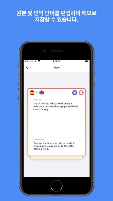안녕 ! CameraGot은 45개 이상의 언어로 된 모든 문서 및 기호를 귀하의 언어로 또는 그 반대로 휴대 전화의 카메라, 정확한 음성 번역기, 텍스트 번역 및 메모 기능. 업무 관련 문서를 번역하고, 여행 중이거나 해외에서 일할 때 음성 번역을 하고, 사진에서 다른 단어의 의미를 파악하고 즉시 신호를 보내 삶을 더 쉽게 만드세요. 특징 • 카메라를 사용하여 문서, 표지판, 메뉴에서 모든 언어를 즉시 번역합니다. • 갤러리 또는 캡처에서 사진을 번역합니다. • 사진 번역기에서 메모로 저장합니다. • 전문적인 발음의 음성 번역기 • 전 세계 45개 이상의 언어로 텍스트 번역을 받으세요. • 남성 또는 여성 목소리로 음성 번역기를 듣습니다. • 다른 방언 사이를 전환합니다. • 키보드 확장. • 음역, 공유, 즐겨찾기, 기록 등. • 말하기, 번역, 메모와 같은 모든 언어를 쉽게 배울 수 있습니다. 자세한 내용은 더 적은 데이터, 더 빠른 번역 * 전문적인 발음으로 일상적인 사용에 편리함 * 알 카메라 번역기 * 이탈리아어, 프랑스어, 영어, 포르투갈어, 스페인어, 한국어, 타갈로그어, 힌디어, 중국어 등 다양한 언어에 대한 다국어 앱 * 언어를 효과적으로 번역하고 말하기를 배우십시오. * 로그인 불필요, 안전하고 친근한 사용 1) 카메라 및 사진 번역기 즉시 카메라를 사용하여 문서, 서명의 텍스트를 자동으로 인식하고 번역합니다. 사진 번역을 위한 다양한 선택: 자르기 영역, 단어를 스 와이프하여 의미를 알 수 있습니다. 2) 메모로 저장 카메라, 사진 번역 후 원본 및 번역된 텍스트를 저장, 편집하여 검토, 메모 또는 학습할 수 있습니다. 3) 텍스트 번역 구문 및 단어에 대한 실시간 번역, 여러 언어의 음성을 텍스트로 번역합니다. 키보드에서 언어를 선택하고 쉽게 입력할 수 있습니다. 4) 음성 번역기 텍스트와 오디오 모두에 대한 실시간 음성 번역기, 탭하여 다시 재생합니다. 5) 대화 번역 음성 번역 기능은 모든 언어로 번역되며 그 반대의 경우도 마찬가지입니다. 키보드에서 입력하여 텍스트를 음성으로 번역합니다. 6) 언어 배우기 음성 번역기의 기능으로 발음을 평가하기 위해 모든 언어 말하기를 배우고 검토를 위해 번역을 메모로 저장하십시오. CameraGot에 대해 자세히 알아보세요: https://www.youpro.store/CameraGot 지원하다 방문 https://www.youpro.store/CameraGot 지원 이메일: [email protected] 이용 약관: https://www.youpro.store/terms-of-use 개인 정보 정책: https://www.youpro.store/privacy-policy 모든 번역기 기능에 완전히 액세스하려면 다음에 대한 액세스를 허용해야 합니다. *카메라 및 사진 갤러리 – 이 번역기는 사진을 쉽게 번역하는 데 도움이 됩니다. *마이크 및 음성 인식 – 음성 변환 번역기가 작동하도록 합니다. *알림 – 새로운 앱 기능과 흥미로운 언어 사실에 대한 정보를 계속 받을 수 있습니다. 이 번역기의 결제 및 갱신: * 결제는 구매 확인 시 iTunes 계정으로 청구됩니다. 현재 기간이 종료되기 최소 24시간 전에 자동 갱신을 해제하지 않으면 구독이 자동으로 갱신됩니다. * 계정은 현재 기간이 끝나기 24시간 이내에 갱신 비용이 청구됩니다. * 구매 후 언제든지 계정 설정에서 자동 갱신을 관리하거나 해제할 수 있습니다. * 활성 기간 동안 현재 구독을 취소할 수 없습니다. 번역기에서 지원되는 언어 및 방언: 아랍어, 벵골어, 불가리아어, 카탈로니아어, 중국어(간체), 중국어(번체), 체코어, 덴마크어, 네덜란드어, 영어, 필리핀어, 핀란드어, 프랑스어, 독일어, 그리스어, 구자라트어, 힌디어, 헝가리어, 인도네시아어, 이탈리아어, 일본어, 칸나다어, 한국어, 라트비아어, 말레이어, 말라얄람어, 노르웨이어, 폴란드어, 포르투갈어, 펀잡어, 루마니아어, 러시아어, 세르비아어, 슬로바키아어, 슬로베니아어, 스페인어, 스웨덴어, 타밀어, 텔루구어, 태국어, 터키어, 우크라이나어, 베트남어