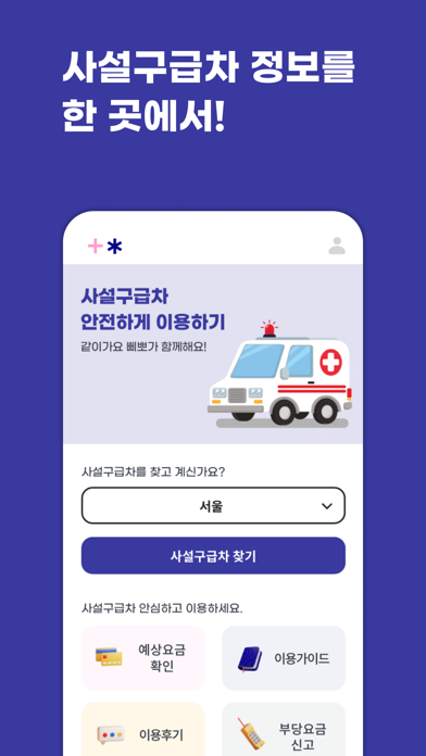 [같이가요 삐뽀] * 주요기능안내 * - 사설구급차 업체 정보 지역별 등록된 사설구급차 업체 및 연락처 정보를 통해 내 지역 사설구급차 Direct Call 업체별 등록된 이용후기 공유, 관심업체 등록 및 SNS 공유 - 예상비용확인 구급차 종류, 거리, 할증시간 등에 따른 예상 비용 조회 - 이용후기 사설구급차 이용 경험 및 업체 평가정보 등록 - 이용가이드 구급차 이용방법 정보 제공 이용자가 구급차 이용에 사전에 알아야 할 유의사항 정보 제공 - 부당요금 신고 과다 비용 청구시 업체 검색을 통해 업체가 등록된 자치구에 전화 신고