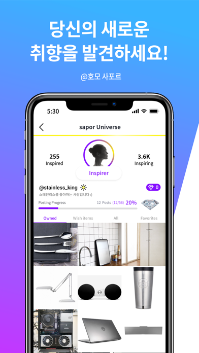 취향의 인간, 호모 사포르에서 당신의 완벽한 취향을 발견하세요! 호모 사포르는 당신의 애착 아이템들을 소개하고 다른 사용자들과 취향을 공유할 수 있는 공간입니다. 취향들을 발견하기 위한 여행을 떠나보세요. 지구에서 발견한 당신의 특별한 취향을 다른 사람들과 공유해 주세요! 주요 기능: 취향아이템 등록 및 공유: 당신의 소유물과 위시리스트를 등록하여 다른 사용자들과 당신의 취향을 공유하세요. 그 물건에 얽힌 당신의 이야기, 추억, 그리고 그 물건이 왜 취향저격인지 알려주세요. Inspire 기능: 영감을 주는 사용자를 등록하고 그들의 업데이트를 더 빨리 받아보세요. 채팅 기능: 공통의 관심사를 가진 사람들과 깊이 있는 대화를 나눠보세요. 구매링크 게시: 현재 판매 중인 제품이라면 구매가능한 링크를 게시하여 다른 사용자가 바로 구매할 수 있도록 친절히 도와주세요. 쇼핑이 더욱 간편해집니다. 다른 사람의 취향 구경: 다른 사용자들의 취향저격 제품들을 구경하고, 몰랐던 나의 새로운 취향을 발견할 수 있습니다. 그분의 이야기, 취향저격인 이유들을 감상해보세요. 댓글을 통해 소통할 수도 있어요. 나와 같은 취향을 가진 지구 거주인을 만나는 기쁨을 느낄 수 있습니다. 저희는 계속 feature를 업데이트 할께요! 지켜봐주세요!