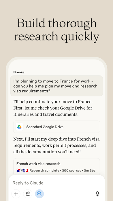 Whether you're drafting a business proposal between meetings, translating menus while traveling, brainstorming gift ideas while shopping, or composing a speech while waiting for a flight, Claude is ready to assist you. INSTANT ANSWERS With Claude you have a world of intelligence right in your pocket. Just start a chat, attach a file, or send Claude a photo for real-time image analysis. EXTENDED THINKING Claude can produce near-instant responses or extended, step-by-step thinking that is visible to you. For challenging problems that need more reasoning, Claude 3.7 Sonnet will take the time to break down the problem and consider different solutions before answering. FASTER DEEP WORK Collaborate with Claude on critical tasks, brainstorming, and complex problems to make significant progress while you're on the go. Pick up and continue conversations with Claude across the web and other devices. LESS BUSY WORK Claude can help draft your emails, summarize your meetings, and assist with all the small tasks you don't want to do. INTELLIGENCE AT YOUR FINGERTIPS Claude is powered by the next generation of Claude models: Claude Opus 4 and Claude Sonnet 4, setting new standards for coding, advanced reasoning, and AI agents. Our latest models offers state-of-the-art performance on coding tasks and improved capabilities across a wide range of subjects. TRUSTED PARTNER Claude is designed to be reliable, accurate, and helpful. It's brought to you by Anthropic, an AI research company dedicated to building safe and dependable AI tools. Claude is free to use. By upgrading to our Pro or Max plan, you'll get more Claude usage compared to the free plan, plus access to additional models, like Claude 3.7 Sonnet.