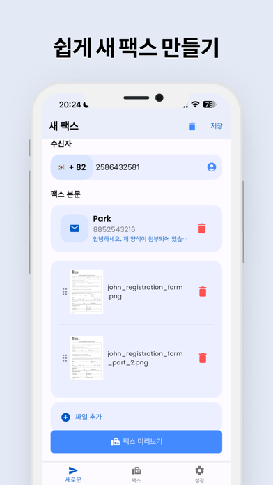 FaxFlow 소개: iPhone용 최고의 팩스 앱 신뢰성, 보안성, 사용 편의성을 중시하는 전문가를 위해 설계된 최고 평점의 앱인 FaxFlow로 iPhone을 강력한 팩스기로 바꿔보세요. FaxFlow는 민감한 정보를 안전하게 보호해야 하는 의료, 법률 및 비즈니스 전문가에게 완벽한 선택입니다. 왜 FaxFlow를 팩스 작업에 선택해야 할까요? 간편하게 팩스 보내기: 몇 번만 탭하면 언제 어디서나 iPhone에서 팩스를 보낼 수 있습니다. 즉각적인 문서 스캔: iPhone의 카메라를 사용하여 뛰어난 선명도로 문서를 스캔하고 팩스로 보낼 수 있습니다. 강화된 보안: FaxFlow를 통해 전송되는 모든 팩스는 고급 암호화 기술로 보호됩니다. 여러 형식 지원: PDF, PNG, JPG 형식으로 팩스를 쉽게 보낼 수 있습니다. 실시간 알림: 팩스를 보내거나 받을 때 즉시 업데이트를 받을 수 있습니다. 사용자 정의 가능한 표지지: 사용자 정의 가능한 표지지로 팩스에 전문적인 터치를 더하세요. 원활한 팩스 전송을 위해 최적화 FaxFlow는 팩스 경험을 원활하고 효율적으로 만들기 위해 신중하게 제작되었습니다. 직관적인 인터페이스와 빠른 설정으로 번거로움 없이 팩스 통신을 관리할 수 있습니다. 모든 전문가에게 이상적 환자 기록을 보내는 의사이든, 민감한 문서를 관리하는 변호사이든, 송장과 계약서를 처리하는 소규모 사업주이든, FaxFlow는 모든 전문적인 요구 사항을 충족하도록 설계된 팩스 솔루션입니다. 친환경적이고 비용 효율적 FaxFlow로 지속 가능성을 수용하고 부피가 큰 팩스 기계와 과도한 용지 사용을 없애 탄소 발자국을 줄이세요. FaxFlow는 환경에 도움이 될 뿐만 아니라 운영 비용을 낮추는 데에도 도움이 됩니다. 오늘 FaxFlow를 다운로드하세요! FaxFlow로 팩스를 간소화한 많은 만족스러운 사용자에 합류하세요. 지금 다운로드하여 iPhone용 최고의 팩스 앱으로 전문적인 커뮤니케이션을 향상하세요. 이동 중에도 쉽고 안전하며 안정적인 팩스를 경험하세요! 개인정보 보호정책: https://fax-flow.com/privacy-policy 이용 약관: https://fax-flow.com/terms-of-use