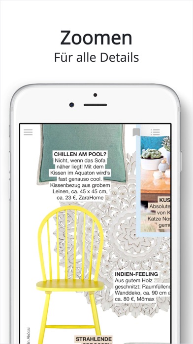 Das Laura WOHNEN kreativ ePaper ist für junge Frauen, die sich gerne kreativ ausleben und Spaß an neuen Deko- und Wohnideen haben. Mehr Lesekomfort, mehr Features – jeden Monat erscheint in Laura WOHNEN kreativ ein bunter Themenmix aus Wohnberatung, Haus- und Wohnreportagen, Neuheiten und Trends sowie vielen Ratgeberseiten. In jeder Ausgabe werden alle Räume der Wohnung berücksichtigt. Zum Inhalt gehört eine regelmäßige Wohnberatung von erfahrenen Innenarchitekten, die sich ausgewählter Einrichtungsprobleme annehmen. Mit dem ePaper können Sie einfach auf Details zoomen oder ganz entspannt Inspiration beim Blättern suchen. Das Digital-Magazinder Laura WOHNEN kreativ bietet ihnen zudem auf 20 Extra-Seiten ein Kreativ- und Deko-Special mit den besten Ideen zum Selbermachen. THEMEN • Wohntrends • Dekoideen • Möbel- und Marktübersicht • Wohnberatung • Haus- und Wohnreportagen • Ratgeberseiten FEATURES • Alle Magazine als ePaper • Einzel- und Abokäufe • Kostenlose Vorschau jeder Ausgabe • Gespeicherte Ausgaben offline lesen • Lesemodus mit Zoom-in und -out • Lesezeichenfunktion • Navigation durch Inhaltsverzeichnis • Suchfunktion über alle Ausgaben und alle Inhalte Wir wünschen Ihnen viel Spaß beim Lesen von Laura WOHNEN kreativ! Schauen Sie auch gerne auf unserer Webseite und unseren Social-Media-Profilen vorbei: • www.wunderweib.de/laura-wohnen-kreativ • www.facebook.com/LauraWohnenKreativ Abonnements und Einzelkäufe Unsere Nutzer können über In-App-Käufe sowohl einzelne Ausgaben als auch Abonnements erwerben. Bitte beachten Sie die folgenden Hinweise: • Ihr Abonnement (im Folgenden auch Abo) verlängert sich automatisch, außer die automatische Verlängerung wird mindestens 24 Stunden vor dem Auslaufen des aktuellen Abos ausgeschaltet • Innerhalb der letzten 24 Stunden vor dem Auslaufen eines Abos werden Ihnen die Kosten für die Verlängerung abgebucht. Die Laufzeit und auch der Preis sind identisch mit denen Ihres Abos, welches zu dem Zeitpunkt aktuell ist • Sie können ihr Abo verwalten und die automatische Verlängerung ausschalten, indem Sie nach dem Kauf in Ihre Kontoeinstellung gehen • Eine Kündigung des aktuellen Abos ist während des Zeitraums des aktiven Abos leider nicht möglich. Dies beeinflusst nicht Ihre gesetzlichen Rechte • Jeder nicht genutzte Anteil eines kostenlosen Probe-Abos, falls angeboten, wird nach Abschließen eines Abos verfallen • Diese App bietet möglicherweise eine kostenlose Probe-Version an. Am Ende einer Probe-Phase wird im Anschluss der volle Preis eines Abonnements berechnet. Kündigungen müssen mindestens 24 Stunden vor dem Auslaufen des Zeitraums des Probe-Abos erfolgen, um eine Abbuchung zu verhindern. Weitere Information finden Sie unter folgendem Link: https://support.apple.com/de-de/HT202039 Das Abo wird die aktuelle Ausgabe beinhalten, falls diese nicht bereits gekauft wurde, sowie auch die zukünftigen Ausgaben. Der Preis wird von Ihrem iTunes-Konto abgebucht, sobald Sie den Kauf bestätigt haben. Die digitale Edition dieses Magazins beinhaltet keine etwaigen Extras oder Geschenke, welcher in der Print-Version enthalten sind. Während wir bestrebt sind, jegliche Extras oder Zusatzinhalte auch in der digitalen Version bereitzustellen, können wir dies jedoch nicht immer garantieren. Weitere Informationen finden Sie z.B. auch innerhalb der App in unserem FAQ-Bereich. Gerätekompatibilität Diese App ist ausgelegt für Geräte mit 64-bit-Prozessoren, oder höher. Ältere Geräte mit schwächeren Prozessoren, wie beispielsweise das iPad 1, 2 und das iPad Mini 1, 2 und die iPhones 3, 4 und 5 sind möglicherweise nicht in der Lage, diese App einwandfrei auszuführen. Nutzungsbedingungen: https://www.bauer-plus.de/agb Datenschutzhinweise: https://www.bauer-plus.de/datenschutz Sollten Sie weitere Fragen oder Anmerkungen haben, schreiben Sie uns gerne an [email protected]. Wir freuen uns über jedes Feedback über unser Magazin.