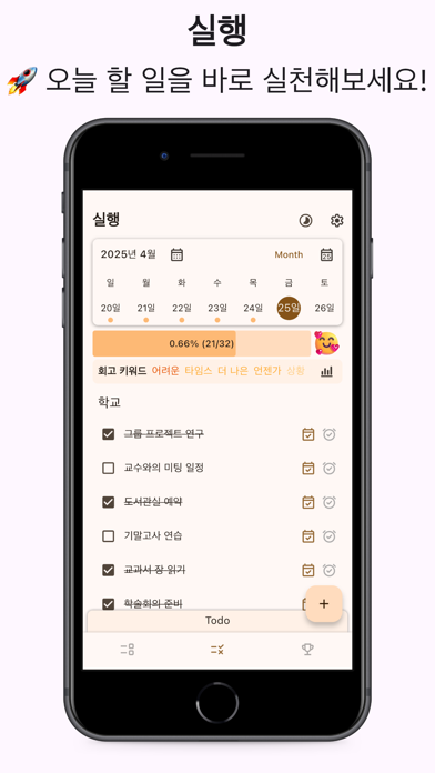 하루하루 더 나은 나를 만들어주는 TODO 앱 "beBetter"! 목표 설정부터 실행, 회고, 분석까지, 체계적인 플로우로 성장의 기록을 남겨보세요. 반복될수록 더욱 효율적으로 발전하는 당신을 만날 수 있습니다. # Todo 생성: 목표를 명확하게 설정하고, 할 일을 세분화하여 체계적인 하루를 준비하세요. 작은 목표도 놓치지 않도록 깔끔하게 정리해보세요! # 계획: 어떤 요일에, 어떤 방식으로 실행할지 계획을 세워보세요. 구체적인 계획은 성공의 열쇠, 미리 준비된 당신의 하루가 달라집니다. #실행: 세운 계획을 실행해보세요! 하루하루 성취감을 쌓아가며, 목표에 한 걸음 더 가까워집니다. 작은 실행이 큰 변화를 만듭니다. #회고: 하루를 마무리하며, 오늘의 성과를 되돌아보세요. 어떤 점이 좋았고, 무엇을 개선할 수 있을지 스스로 피드백을 남기세요. #분석: 누적된 회고를 바탕으로 나만의 성장 데이터를 분석하세요. 매일매일 진화하는 나를 발견하며 더 나은 내일을 설계해보세요.