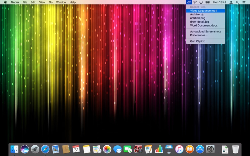 Take a screenshot or drop any file on the menubar icon. Clipitto will automatically upload it to your Dropbox account and instantly place a link into your clipboard for quick sharing. Just give it a go. FEATURES: Easy drag'n'drop file sharing Drag and drop any file to the Clipitto icon in menu bar and share the link with your family, friends, colleagues or whoever you want. Instant link availability Don't wait until the upload is complete. Clipitto places the link in your clipboard instantly after you take the screenshot or drop a file on the menu bar. Automatic screenshots uploading You can set Clipitto to automatically upload screenshots for you and, if you like, it will also clean up the original files. Privacy Clipitto is allowed to access only a dedicated folder in your Dropbox account. Enjoy the freedom of a full control over the files you upload. Intelligent links grouping Clipitto intelligently groups the links in your clipboard as you sequentially upload more files in a user-specified time limit. Recent files Clipitto alows you to access five most recently uploaded files, open them up in your browser, or just copy a shortened link to your clipboard. Quick link retrieval You can easily retrieve shortened links for files that you have recently uploaded - and without opening a web browser. Just navigate to Clipitto menu and click the clip button. URL shortener Not only files, you can also drag and drop URL links directly from your favourite web browser to get a shortened version of the link. REQUIREMENT: Dropbox account.