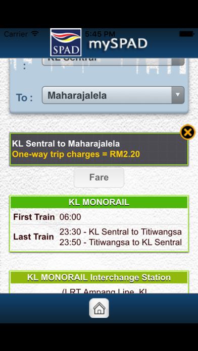 The official app from Malaysia’s Land Public Transport Commission or Suruhanjaya Pengangkutan Awam Darat (SPAD). mySPAD is one of many apps offered under the project of myGov Mobile initiative by MAMPU (Malaysian Administrative Modernisation & Management Planning Unit) to actuate governments services through mobile platforms for a quick and easy access from anywhere. Through mySPAD, you are able to obtain instant accurate information on public transport terminals, routes, schedules and fare on your smart device. A convenient and hassle-free way to plan your journey! mySPAD is offering: · Rapid public bus routes (includes Penang & Kuantan) · Dial a Taxi (list of licensed taxi operators) · Light Rail Transit (LRT) info & routes · KTM Commuter service – schedule and fare · Go City-KL bus routes · KL Monorail: routes & schedule · Includes a School Bus Checker on registered school buses for parents’ ease of mind. So, if you are simply holidaying in Malaysia, a regular commuter or planning a trip to the City do give mySPAD a go. Download now. It’s Free! You are also welcome to send us feedback on your experience via the Feedback icon in the app. Follow us for more updates at: www.mygovmobile.malaysia.gov.my www.spad.gov.my Brought to you by DAPAT Vista (M) Sdn Bhd