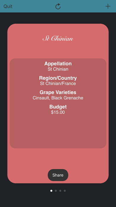 Forbes recommendation : "the app aims to match wines with occasions, foods, people, and moments" Find my wine will recommend a wide range of new and old world wines, by their name or their protected denomination of origin. The Majority of the wines should be available in any wine cellar around the world.