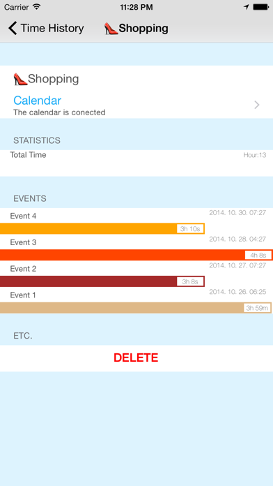 "시간을 기록하세요!" "시간 기록" 은 당신의 시간을 보다 쉽게 기록할수 있도록 도와줍니다. 단지 앱을 실행하고 항목을 넘겨보세요. "내가 그때 어딧었지?" 당신이 기록한 것들을 캘린더앱에서 확인할 수 있습니다. 그것은 멋집니다. 캘린더는 어디서든 볼수 있지않습니까? "다중 기록!" 여러개의 아이탬을 동시에 기록할 수 있습니다. 예를 들어 친구를 만나는것과 음료를 하는 것을 동시에 기록한다면? 가능합니다! "위치를 자동으로 기록합니다" 위치정보 기록을 위해 따로 공을 들일필요 없습니다. 시간을 기록하는 순간 당신의 위치를 같이 기록합니다. "공유하세요!" 당신의 평균 시간이나 최대 시간등을 친구와 공유하세요! "캘린더 앱이 아름다워집니다!" Emoji를 사용하여 기록하면 당신의 캘린더화면이 매우 아름다워질것입니다. 우리는 확신합니다!