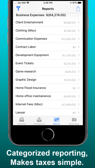 Become your own accountant, with iAccountant. Managing your money has never been so simple! iAccountant is designed for money-savy consumers or small businesses to easily track their expenses, account balances and capture receipts for tax reporting and money management purposes. Track all of your business expenses using the same pre-defined categories that you will find in your tax software when you do your federal income taxes. Organize your expenses by account to use iAccountant as a full-fledged money management app. Setup recurring, scheduled transactions. Perform account to account transfers and more. Quickly Capture a picture of a receipt using Quick-Snap and come back to the app to file it later when you have time. Email an expense to your financial officer to write off an expense. Add expenses quickly on the go with Force Touch shortcuts from the home screen. View and Generate a yearly PDF report containing summaries for all of your expenses by category. With your well organized expense report containing all your expenses with receipts in a single PDF and a summarized CSV / excel file, you be well prepared for any audit of your business expenses by the IRS. --- Note: iAccountant is free to try, but to capture more than 20 expenses, you must upgrade to the paid version via In App Purchase ----