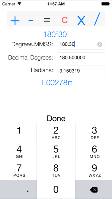 Convert on-the-go, and never forget a calculation again. EasyConvert's log stores all of your conversions from measurements including Length, Area, Weight, Speed, Acceleration, Temperature and Many More. Add, subtract, multiply, divide and convert angles in any combination of decimal degrees, DMS or radians with Easy Convert's angle arithmetic.