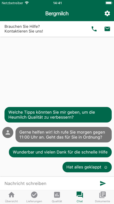 Die innovative Service-App für Mitglieder der Bergmilch Südtirol um tagesaktuelle Liefer-Statistiken und Qualitätsdaten bequem über sein iPhone zu kontrollieren und zu verfolgen. Die Bergmilch Südtirol App ist die erste Ihrer Art und bietet Bauern bzw. Mitgliedern einfachen Zugriff auf die persönlichen Daten. Zudem bietet ein Chat die Möglichkeit schnell und unkompliziert mit dem Team von Bergmilch/Mila in Kontakt zu treten. Stets die Qualität der eigenen Milch unter Kontrolle und bei Fragen stehen unsere Experten zur Verfügung.