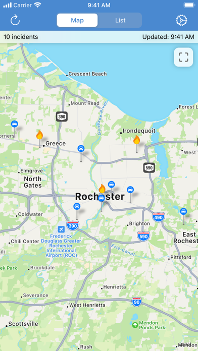 Monroe County Incidents provides you with the latest information regarding traffic, fire, and medical incidents throughout Monroe County, New York. Commute to work or just running some errands? Check with Monroe County Incidents before you start your drive so you know your route is clear! Features: ------------------- • Easy to view map showing: · All the latest incidents in Monroe County · Custom pin pictures for each incident type · Your current location • Easy to read list of all the latest incidents sorted chronologically and by incident type. • Informative detail page for each incident showing: · Location · Incident type · Incident status ------------------- Disclaimer: Monroe County Incidents is for reference only. While we try our best, we are not responsible for the accuracy of the incident information listed within the application. Please use responsibly and do not operate while driving. Privacy Policy: https://soapbox.software/privacy Terms of Use: https://soapbox.software/incidents/terms