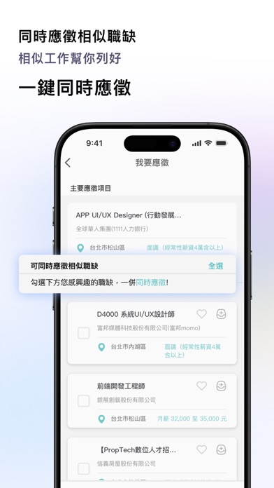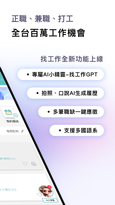 上萬名網友4.8星以上好評 找工作/打工APP— 1111找工作 APP 【全職工作】月薪 40K 起,無經驗也有機會 35K 起 【兼職打工】時薪 200+、學校附近、假日 & 寒暑假工讀 【實習機會】ASML、大立光、全家、Dcard 等企業上線 【二度就業】月薪 32K 起,近家好工作輕鬆找 找工作全新功能上線 .專屬AI小精靈;你的找工作GPT .用拍照,用說的,AI生成履歷 .多筆職缺一鍵同時應徵 .多國語系支援,一鍵切換 【AI小精靈】 你問,AI回答。 最新AI找工作GPT,隨時為你解答求職大小事。 【拍照生成履歷】 手機照一下,履歷就來了。 用手機拍下你的經歷,AI 幫你完成專業履歷。 【開口說生成履歷】 說出來,就是履歷。 只要開口,AI幫你完成一份全新履歷。 【應徵匣】 想投的,全都放進來。 愛上的職缺先收好,一鍵全部投遞。 【同時應徵相似職缺】 一次出擊,多個可能。 相似工作幫你列好,一鍵同時應徵。 【一鍵同步多份履歷】 改一次全部更新,省時也省心。 不用記得「還有哪裡沒改」,一鍵同步其他履歷。 【多國語系支援】 語言切換,一鍵完成。 繁中、英文、日文、越南文、印尼文語系支援。 解鎖更多職涯薪可能,立即下載 – 1111找工作APP!