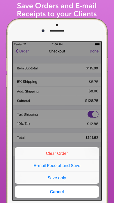 Checkout is the app made for Direct Sales Consultants. Each one of your guests will be impressed with the quick and easy checkout process. Checkout lets you focus on creating a great shopping experience for your customers. Checkout will streamline your sales. It will calculate Discounts, Shipping, Tax and Commission so you don't need to worry about carrying around a calculator. After the order is complete you can e-mail the receipt to your customer. All of your sales are saved and you can view them in the history tab. So you can always keep track of your of sales where ever you are. FEATURES • Calculate your customer orders easily • Ability to discount each item • Add the item's name • Enter Flat Rate and/or Percentage based Shipping • Calculate tax for each order • E-mail the receipt • Save the order and view later We are always developing new features to make Checkout even more useful for Direct Sales Consultants. If you have any feedback please contact us. Thanks for checking out Checkout from SK Studios.