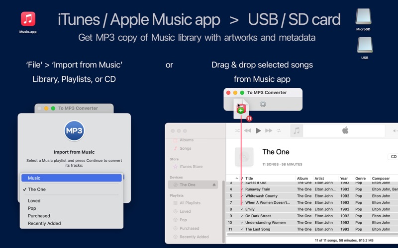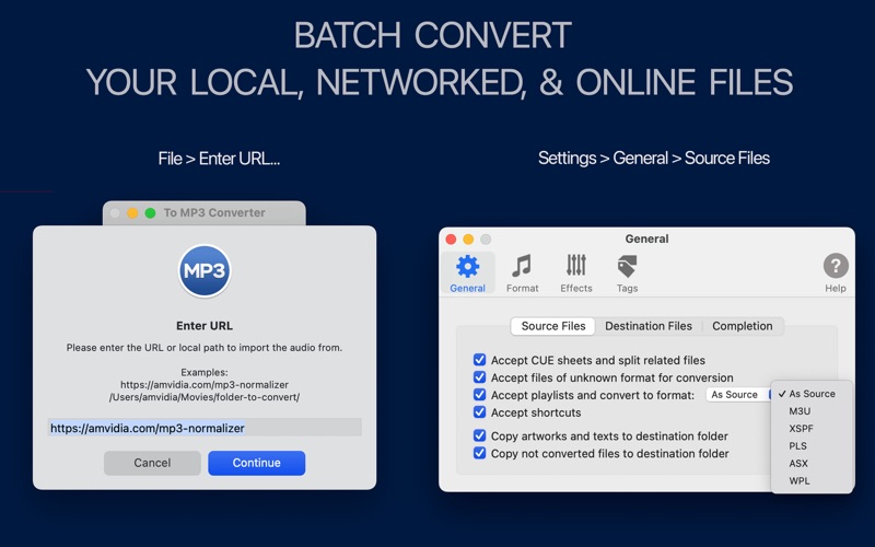 To MP3 Converter is a reliable encoder for easy batch conversion of nearly all audio and video formats into quality, organized MP3 files at the speed of thought. To MP3 Converter features a media downloader, volume booster and equalizer, and audio organizer, providing a sophisticated toolkit to create and transfer clear-sounding MP3 collections across your devices. You can download the To MP3 Converter trial version at amvidia.com/to-mp3-converter. INPUT FORMATS To MP3 Converter can encode over 200 input audio and video file formats, including but not limited to MP4, VID, FLAC, FLV, WMA, M4A, WAV, AVI, MPG, ASF, MPEG, MPE, MOV, 3GP, M4V, MKV, MOD, OGM, CAF. In addition, the converter can extract and convert media files from local and web links, playlists, and CUE files. BATCH CONVERSION To MP3 Converter can encode an unlimited number of files and folders in one click and supports multiple simultaneous conversions. In addition, if you process a directory of folders, To MP3 Converter can replicate its structure or organize MP3 files into folders and playlists according to audio metadata. JUST DROP FILES IN Drop or paste files or folders to convert to the app's window or icon. To MP3 Converter transfers source metadata, loads missing artworks and tags from paths, and applies optimal Bit Rate, Sample Rate, and Channels to output MP3 files by default. Alternatively, you can customize the MP3 format and all other conversion aspects in the Preferences window. MEDIA DOWNLOADER To MP3 Converter is a perfect solution for transferring local and online audio libraries between your devices. It can convert media collections from networked storage and web pages. Please note that downloading and MP3 conversion of videos from Youtube and other similar streaming services are not supported. SOUND QUALITY Audio Effects designed to improve the quality of MP3 playback: • Equalize music volume with Loudness (EBU R128) Normalization. • Boost speech volume by combining Peak Normalization and Automatic Volume Control. • Remove gaps between songs with the automatic Silence Cutter. • Smooth playback with the Fade Effects. • Limit Duration to quickly create test MP3 collections. MP3 TAGGER, RENAMER, & ORGANIZER • Transfer audio tags from source files. • Extracts tags from file and folder names automatically. • Auto-search and download album covers and song details from online databases. • Rename MP3 files using custom ID3 tag patterns. • Sort MP3 files into folders and playlists according to audio metadata. IMPORT & EXPORT APPLE MUSIC LIBRARY • Import from Music tool allows easy transfer of Apple Music library, playlists, or selected songs to organized MP3 collections. • Export to Music menu adds MP3 files to selected Apple Music playlist. PERFORMANCE AND STABILITY To MP3 Converter fully utilizes all CPU cores. Encoding in separate processes makes it reliable and 'crash free.' CUSTOMER SUPPORT Please, email [email protected] about any problems or feature requests. We are always glad to improve our applications for you. Also, if you like To MP3 Converter, a review at the App Store would be very appreciated. *Note: Conversion of DRM protected M4P files (protected AAC audio files) to MP3 is not supported. **Note: downloading music and videos from Youtube, Vimeo, and other similar services containing copyrighted content is not supported.