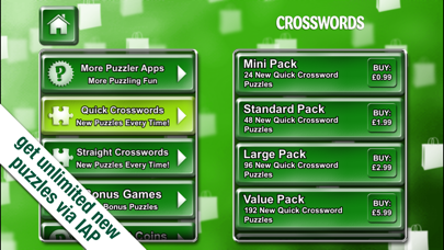 High Quality English Language Crosswords, up to 15x15 grids Crosswords need little introduction; they have been the staple puzzle of newspapers and magazines the world over, and Puzzler has been providing high quality content for over 40 years. To get you started there are 12 free Crossword puzzles containing a selection of various grid sizes to test your Crossword skills. Within the store there are two options: • Quick Crosswords - up to 11x11 grid sizes • Standard Crosswords - 13x13 to 15x15 grid sizes Each option then allows you to purchase further content via a range of IAP packs, with larger pack sizes giving extra savings. You can purchase any of the IAP options as many times as you like, and a completely unique set of puzzles will be downloaded to your puzzle matrix every time! Features: • Two level options; Quick Crosswords and Standard Crosswords • Unique new content with every puzzle purchase - never see the same puzzle twice • Quality English language puzzles • Pick up your state of play across multiple devices using the same account details (excludes anonymous players) • Straight clues suitable for all Crossword fans • Frequent free loyalty content • Connect with friends when connected via Facebook • Share your achievements with friends and family via Facebook or Twitter • Collect trophies and free hint coins with each purchased pack • Switch on in-game themes to personalise backgrounds, fonts and motifs (requires IAP) • Full in-game hints feature lets you spend Hint Coins to solve those trickier clues • Use the same login details across all of our new apps • Easy to contact us from within game See our growing range of puzzle apps, with something for the whole family - search for Puzzler in your app store, or visit: http://www.puzzler.com/digital-apps/ Enjoy... and don’t forget to talk to us if you have any questions, or need help!