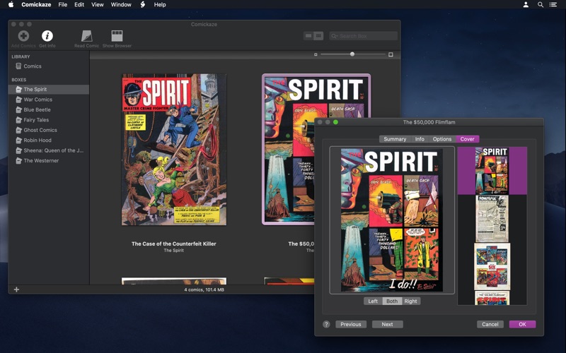A hand-crafted reader for DRM-free comics (CBR, CBZ, or PDF) Comickaze provides a powerful interface for managing your digital comic library: • Automatically figures out the info for your issues from their filenames • Don't worry about where your files are located - let Comickaze arrange them for you. They're always a drag-and-drop away! • Change info (such as Series or Publisher) for a single issue, or many at once • Create Boxes to organize your collection into lists • Choose the cover you like for issues with more than one • Support for macOS features like Dark Mode and Touch Bar Have fun reading your comics with a customizable reader: • Effortless page-turning via keyboard, mouse, and gestures • Choose whether to view issues in 1- or 2-page spreads • Go Full Screen to use your whole display • Hide pages, such as ads (automatically hides some ads) • Choose whether each issue reads left-to-right (western comics), or right-to-left (Manga)