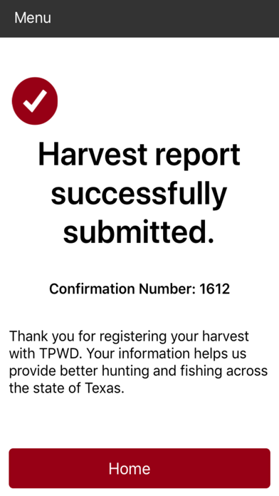 Built specifically for Texas, this official app helps hunters and anglers report harvests, access many public hunting sites, and view license holdings from your phone or tablet while helping Texas Parks and Wildlife Department manage healthy game and fish populations. With My Texas Hunt Harvest, you can: - Report harvest of native big and small game animals, alligator gar, oversized red drum, and flounder - View your harvest history, - Conduct onsite registration at many public hunting units, - Download maps of public hunting units for use with your GPS enabled device, even in offline mode, - Look up and store your current hunting and fishing license information, - View your license purchase history, and - Reportar su cosecha en espanol o en ingles (report your harvest in English or Spanish). Note: tagging requirements associated with your license type still apply when using this app. If your license comes with physical tags and a harvest log on the license, all physical documentation must be completed, regardless of use of this app.