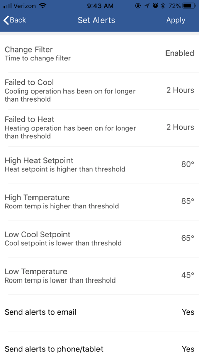 Monitor and adjust your thermostat while away from home. Verify your heating/cooling system is working when you are on vacation. Adjust your comfort level from across the room. Set weekly schedule. Set annual vacation / close dates for schools and businesses.Receive an alert when thermostat or HVAC equipment is not running right. Save money and protect your property. Monitor rental properties. Save energy and protect our planet.
