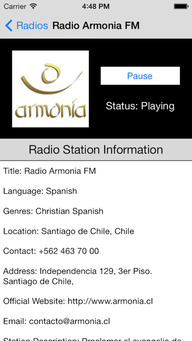 This Chile Radio Live Player app is the simplest and most comprehensive radio app which covers many popular radio channels and stations in Chile. One of the great features provided in this app is that this app support multitasking / background mode. This means that you can listen to any of your favorite Chile radio channel and in the mean time, do other stuffs with your device such as reading books and browsing websites. Listen, enjoy, and let your favorite radio channels and music accompany you anywhere anytime :D The radio channels included in this Chile Radio Live app but not limited to are (some will be added in the next update): ADN Radio Chile 107 Punto 9 Altisima FM Amanda FM Antara FM Antonia 92.5 FM Apocalipsis FM Arcoiris FM Artesanía Beethoven FM Carnaval La Ligua CE5SLC 147.240 Mhz Los Angeles Repeater Centinela FM Cielo FM ClubMix Chile Coloane FM Conexion Radio Copiapo FM Creativa 95.5 FM Cumbre FM 90.9 Definicion FM DelMaipoFM Diferencia FM Digital Copiapó Digital FM Digital FM (Iquique) Digital FM Antofagasta Digital Fm Arica Digital Fm Calama Digital Fm Concepción Digital Fm La Serena Digital Fm Temuco Digital FM Valparaíso Digital Osorno Digital Puerto Montt Digital Valdivia Don Matias 106.1 FM El Conquistador FM (Concepción) El Conquistador FM (Osorno) El Conquistador FM (Puerto Montt) El Conquistador FM (Santiago de Chile) El Conquistador FM (Valdivia) Eva FM Evangelista FM Faraonica FM FM Candelaria FM Caricia FM de los Recuerdos Fm del Mar Puerto Aguirre FM imagen Fm Impacto 102.9 FM Joven FM Music 103.7FM Curacavi FM Okay FM Okay FM Okey FM Okey FM Okey FM Okey FM Okey FM PlayBack FM Plus Fm Siempre FM Siete FM Siete Rock FM Sombras FM Tiempo FM Tu 92.1 FM7 Gente FM Hotmusic Radio 105.3 FM I Love Chile Radio Ibiza FM Infinita Radio La Mega La Radio Mas Austral La Radioneta Libra FM Los Angeles Police Radio Club CE5SLC 147.600 Mhz Repeater Lógika FM Talca M80 Radio Macarena FM MADERO FM Madero FM Millaray Radio Multimedia Cappissima NSE Radio (Barcelona) Nueva Belén FM Oasis FM Palabras de Vida 95.7 FM Paula FM Pingüino Radio Play FM Positiva FM Castro Positiva FM Concepcion Positiva FM Copiapo Positiva FM Osorno Positiva FM Puerto Montt Positiva FM San Antonio Positiva FM Temuco Positiva FM Valdivia Prendete Presidente Ibañez Puelche FM Purranque FM Radio 101 FM Radio Aconcagua Radio Acuarela FM Radio Agricultura (Chile) Radio Ainil Radio Alas de Aguilas Radio Alborada Radio Alegre Radio Alegria del Transporte Radio Alfaomega FM Radio Amanda 97.7 Radio Ambrosio Linares Radio Amor Radio Ancoa Radio Andina Radio Antillanca Radio Apocalipsis Radio Araucana Radio Arenas Radio Armonia FM Radio Atractiva Radio Aukan Radio Austral Radio Azul Radio Bahia Radio Bienvenida Rancagua Chile Radio Bio Bio (Concepción) Radio Bio Bio (Los Angeles) Radio Bio Bio (Osorno) Radio Bio Bio (Santiago) Radio Bio Bio (Temuco) Radio Bio Bio (Valdivia) Radio Bio Bio (Valparaiso) Radio Bknes Radio Buena Nueva Radio Buena Nueva Radio Canal 95 Radio Candela Radio Caracol Radio Caramelo Radio Caramelo Rengo Radio Caribe Radio Carillón Radio Cariñosa Radio Carnaval Radio Carnaval Radio Carnaval Radio Carnaval 98.3 FM Radio Carnaval Ovalle Radio Carolina Radio Catalina 89.1 FM Radio Centro