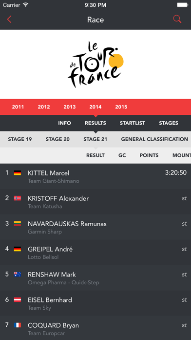 ProCyclingStats brings you the latest road cycling results from all races across the globe. From the Classics, Grand Tours and other Major Races to the smaller local races. Aside from giving you access to the most complete and up to date cycling database in history we offer you the following features: - Keep track of race, team and rider histories - Hourly updates with the latest results - Rider, team and nation rankings - Check the official UCI calendar - Inform yourself about upcoming races and their stages - Search for races, riders and teams GET A PRO SUBSCRIPTION - Dig into the history of your favourite races teams and riders - Go beyond the first 10 entries with complete result views - Follow specific riders, teams and races and get the results in a feed - Receive push notifications on your homescreen with fresh results - Landscape mode to reveal more data - Search on BIB, team, nation or rider in results and startlists - Filter latest results by race class or category to only see what’s relevant for you PCS PRO is available for only $4.99/year. You can subscribe and pay through your iTunes account. Your subscription will automatically renew unless cancelled at least 24 hours before the end of the current period. Auto-renew may be turned off by going to your Account Settings after purchase. The ProCyclingStats App is a must have for every cycling enthousiast and professional rider! We still a have a lot of new features and updates coming but don’t hesitate to send us your feedback.
