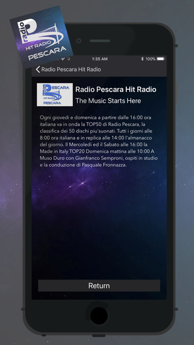 당신은 Radio Pescara 상. 그것을 클릭하고 응용 프로그램 사용을 시작하십시오.