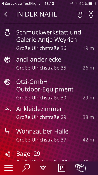 Entdecke einzigartige Produkte und prima Service in der nächsten Nähe. Halles schöne Läden unter einer Marke. Wer etwas Schönes und Besonderes sucht, ist in Halle (Saale) richtig. Denn hier gibt es ein einzigartiges Angebot individueller und hochwertiger Produkte über alle Branchen hinweg: von Mode, Accessoires, Schmuck, Schuhen, Kosmetik über Wohnen, Dekoration, Lifestyle, Kunst und Design, Freizeit-, Sport- und Kinderbedarf bis zu Delikatessen, Bio- und Feinkost. Die SchöneLäden-App der Stadt Halle (Saale) präsentiert die inhabergeführten Einzelhändler in Halles Innenstadt mit ihrem besonderen Angebot und bietet darüber hinaus viele Extras: • Branchentouren • individuelle Favoritenauswahl • nur in der App erhältliche Rabatt-Coupons, die bei teilnehmenden Läden eingelöst werden können • Parkplatzfinder • Routenkartenanzeige • Services: Cafés, Geldautomaten, Toiletten, Hot Spots • Integrierter Audioguide zu touristischen Sehenswürdigkeiten Die App ist kostenlos nicht nur für iOS verfügbar. Ein Teilnahmeformular für Einzelhändler in der Innenstadt von Halle und weitere Informationen gibt es unter www.schöneläden-halle.de