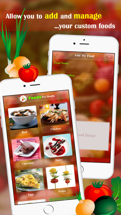 ► FOODS FOR HEALTH! 1000+ good foods for your health. FACT NOW! ► The main features of the application: • 1000+ good foods for your health which divided in several categories: Beef, Chicken, Chocolate, Dairy, Eggs, Fruits, Pasta, Pork, Rice/Grains, Shellfish, Tofu/Soy, Vegetables, Fish… • The food details contains thumb image, ingredients, instructions and food description • Create and manage your menus. Addition, you can schedule your menus! • Bookmark and manage your favorite foods • Allow you to add and manage your custom foods • Share information with your friends via Email and Facebook ► The interface is incredibly simple to use, yet powerful and attractive, compatible with iPod, iPhone, iPad and iPad Mini. ► Please send us your questions, suggestions and comments about the application. Any other feedback, comments, and other communications should be directed to [email protected]. Thank you! ------------------ Mobile510 – “Good - Better - Best” Email: [email protected] Website: http://mobile510.com/ Facebook: http://www.facebook.com/mobile510