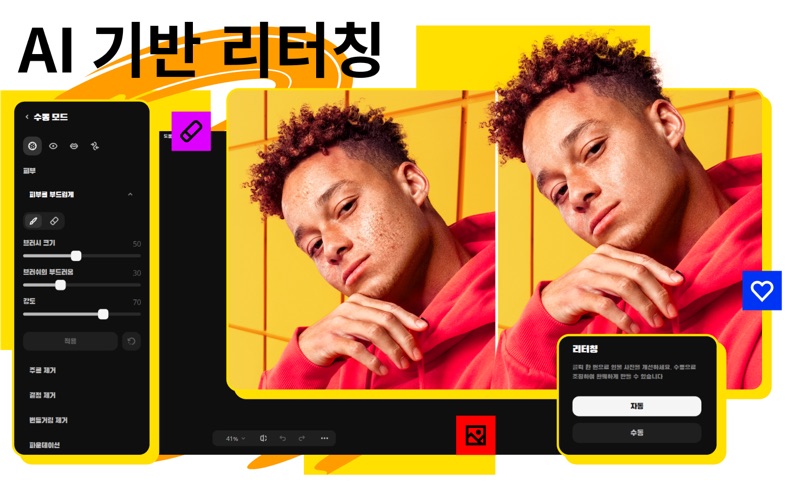 Movavi Photo Editor 괜찮은 사진을 탁월하게 눈부신 사진으로 바꾸는 가장 빠른 방법입니다. AI 기반 도구를 사용하여 몇 가지 간단한 단계만 수행하면 이미지에서 불필요한 요소를 제거하고, 품질을 개선하고, 사진을 편집할 수 있습니다. Movavi로 이미지 편집을 한 차원 업그레이드하십시오: ► 배경 변경 도구를 사용하여 아름다운 콜라주와 재밌는 사진 조작을 만들 수 있습니다. Movavi 특유의 최적화된 알고리즘 덕분에 사진 속 인물을 자동으로 선택할 수 있고, 사용하기 쉬운 도구는 객체를 배경과 순식간에 분리합니다. 그런 다음, 현재 배경을 단색 배경으로 교체하거나 다른 이미지를 적용합니다. 아주 간단합니다. ► AI를 사용하여 여행 파노라마에서 지나가는 행인들, 방해가 되는 울타리 또는 보기에 좋지 않은 전선을 쉽게 제거할 수 있습니다. ► 편리한 리터칭 도구는 피부 잡티를 감추고, 주름을 제거하고, 광택을 줄이고, 치아를 하얗게 하고, 적목 현상을 제거합니다. ► 올인원 메이크업 키트로 완벽한 화장을 하세요: 다양한 색조의 블러셔, 아이섀도우, 립스틱을 시도하고 눈썹을 고치고 마스카라와 파운데이션을 더할 수 있습니다. 눈이나 헤어의 컬러를 바꿉니다. 더 많은 기능을 원하십니까? 심지어 얼굴 모양을 바꾸고 눈을 크게 할 수도 있습니다! ► Movavi는 가장 일반적인 이미지 결함을 쉽게 고칩니다: 노출 과다 또는 지나치게 어두운 이미지를 수동으로 교정하거나 스마트 자동 필터가 사진의 품질을 향상시키고, 디지털 노이즈를 제거합니다. 이미지 요소를 개별적으로 작업합니다: 문제 영역을 선택하고 설정을 조정하여 원하는 결과를 얻습니다. 구성 문제 역시 해결합니다: 한 번의 클릭으로 이미지를 자르고, 회전하고, 뒤집습니다. ► 스마트 복원 도구로 오래된 사진을 복원합니다: 흠집과 주름을 제거하고, 매직 조정 툴로 컬러를 되살리십시오. ► 마지막으로, 스타일리쉬한 필터, 표현력 넘치는 텍스트 캡션, 우아한 프레임 등으로 특별한 터치를 더합니다! 가격 Movavi Photo Editor를 사용하려면 구독해야 합니다. 평가판 버전도 있으므로 구매하기 전에 프로그램을 사용해 볼 수 있습니다. 법률 구매 시 Movavi Photo Editor 스토어에 각 구독 기간과 가격이 표시됩니다. 구매 시 iTunes 계정에 요금이 부과됩니다. 현재 구독 기간이 끝나기 최소 24시간 전에 자동 갱신 기능을 해제하지 않으면 구독이 자동으로 갱신됩니다. iTunes 계정 설정에서 구독과 자동 갱신을 관리/해제할 수 있습니다. 무료 평가 기간 중에 사용하지 않은 부분은 구독 구매 시 즉시 소멸됩니다. 이용약관: https://www.movavi.com/kr/tos.html 개인정보보호정책: https://www.movavi.com/kr/privacy.html 저희는 항상 사용자의 의견을 듣고, 문제가 생기면 기꺼이 도와드립니다: movavi.com/support.html
