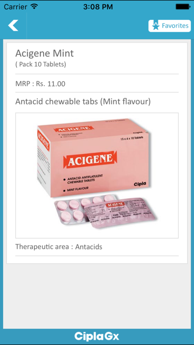 Cipla Gx is built for Pharma retailers and stockists. This application completely covers the entire product range under Cipla Generics division. Cipla Gx is free to download from the App store and works offline and does not require any internet connection once downloaded. Features:- 1. The app displays the complete product details like: Brand name, Pack size, Dosage and Therapeutic category along with the product snap. 2. You can search various products by typing the Brand name, generic name, therapeutic category. 3. The app also allows you to add products to your favourite lists for ready reference. 4. The app is simple to use and navigate. 5. Cipla Gx will provide you all the information pertaining to its Generics (Gx) division on the go. We shall keep adding new features to this app and make it more user-friendly and informative. About Cipla: Cipla is a global pharmaceutical company which uses cutting edge technology and innovation to meet the everyday needs of all patients. For more than 70 years, Cipla has emerged as one of the most respected pharmaceutical names in India as well as across more than 170 countries. Our portfolio includes 2000 products in 65 therapeutic categories with one quality standard globally. Cipla's turnover in FY 2013-14 was 1.7 billion USD. Whilst delivering a long-term sustainable business, Cipla recognises its duty to provide affordable medicines. Cipla's emphasis on access for patients was recognized globally for the pioneering role played in HIV/AIDS treatment as the first pharmaceutical company to provide a triple combination anti-retroviral (ARV) in Africa at less than one dollar a day and thereby treating many millions of patients since 2001. Cipla's research and development focuses on developing innovative products and drug delivery systems and has given India and the world many 'firsts' for instance Triomune. In a tightly regulated environment, the company's manufacturing facilities have approvals from all the main regulators including USFDA, UKMHRA, WHO, MCC, ANVISA, and PMDA which means the company provides one universal standard both domestically and internationally.