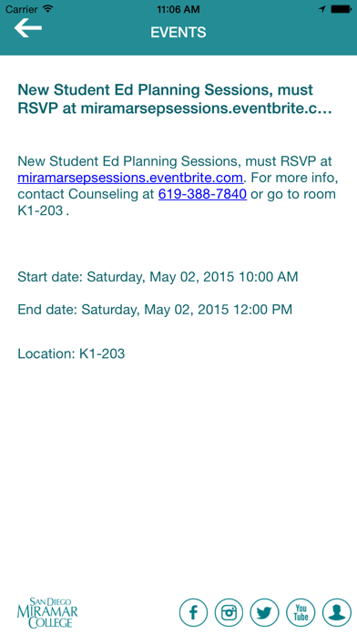 “Miramar Touch” is the official Mobile Application of San Diego Miramar College. It provides students, faculty, staff, and the public with a convenient and easy access to the College’s events, activities, general information, and the College’s website.