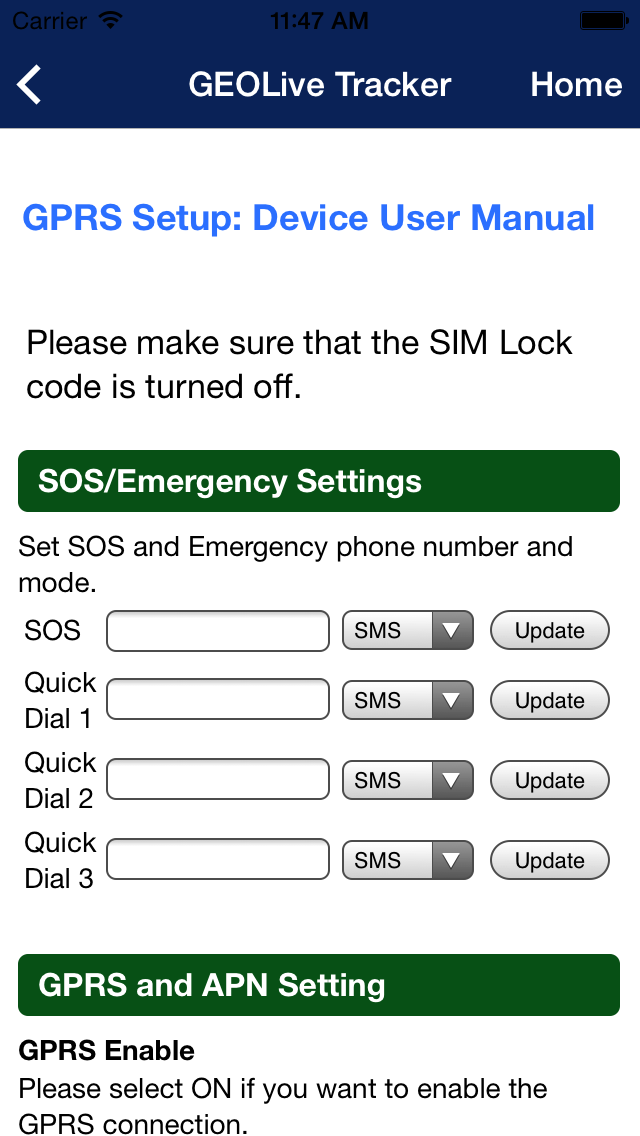 GPRS New Version! Now with GPRS Tracking Functions! GEO LiveTracker is the application that can be used only in accordance to the approved tracking device (Geo P008 Tracker) provided by M3 Asia Sdn Bhd. This apps will provide the user an easy interface to track/manage the tracking device just in one click. Provide the basic and easy interface. User doesn't have to memorize all the command line to do the tracking. *Please consult your local telco operators for sms and data charges that may incur during your usage.