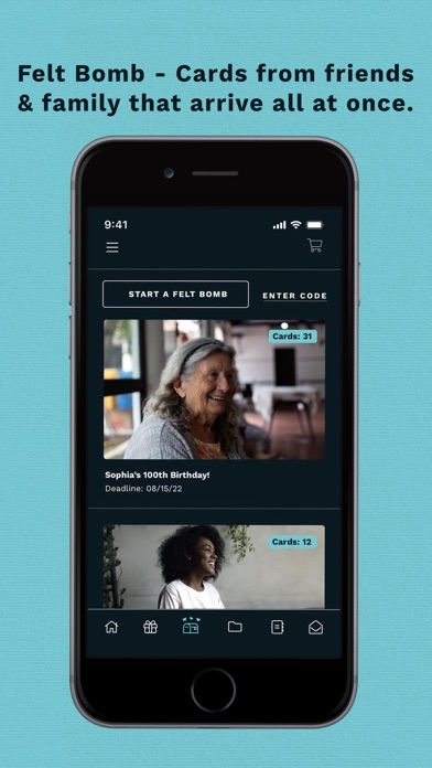 Felt is the highest quality, most personal way to send real, handwritten cards and photos to friends and loved ones. Your handwriting is 100% authentic, like you wrote it with pen and paper. It’s personal mail for the modern world: beautiful, fun and couldn’t be simpler. SHARK TANK | INSTYLE | NPR | NY TIMES | SXSW | REALSIMPLE | BRIT+CO | GLAMOUR Use Felt for every occasion: - Photo Cards - Thank You - Birthdays - Holidays - Grandparents - Babies - Weddings - Graduations - Travel - Invitations - Father’s Day - Mother’s Day - Anniversary & Love - Thinking of You - Get Well Soon - Congratulations DETAILS - Felt cards are mailed within 24 hrs. Monday - Friday. - Cards are 4 inches wide x 4.5 inches tall. We call them card frames. You can connect up to four frames to create one amazing card! - Select from cards made by famous designs and discover unique works by independent artists. - We use premium Mohawk paper and envelopes. - We hand apply a first class stamp. - You can send your Felt card to one person or multiple recipients at once. - Felt cards start at just $4.50 (including postage) or send 3 cards for $6 a month. - Volume discounts are available in the app for larger card sending needs. - Make it a gift by adding fresh-cut flowers, real cash money or select a gift card from popular brands. - Adding contacts is easy! Import them right from your phone into the app or upload a spreadsheet here: https://myfelt.feltapp.com/addressbook. HOW IT WORKS Just select one of our many original card designs, or select a photo from your phone. Then write a personal message on the front or back of the card with a stylus or just your finger. (Don’t worry you can type too, and we have several fun designer fonts to choose from.) You can then add up to three additional photos to your order, or a gift card. We print your cards, photos and handwritten message on premium Mohawk card stock. Multiple card frames come in our own unique square accordion-style format, with micro-perforations between each fold. We seal them by hand, add a first class hand-applied stamp and try to mail them within 24hrs. We go to great lengths to make sure the final product is as personal and heartfelt as if you sent it yourself. You can send a Felt card to just one person or send the same card or photos to lots of friends and family, to share and preserve your special memories. Felt is used by brides and new mom’s for sending all their thank you’s and it’s perfect for Holiday cards or any occasion. Oh, snap. And there’s more: - Delayed Delivery: Write a card today and select a future date for your card to arrive by. (No more missing your BFF's birthday because you had to wait until the last minute...and then forgot.) - Templates: Save cards to finish later or send the same card again in the future without having to re-write the message. - Handwritten Address Book: We save all your contacts in the Felt handwritten Address book! Easily keep track of the addresses you wrote, and quickly add multiple recipients to your order. - Birthday Reminders: Add a reminder for your friend’s birthday, anniversary or any other event and we’ll remind you ten days before so you can send a card on time. - Add real cash money or gift cards to your order for Birthdays or Holidays, or just because. - International Shipping: Ship a Card anywhere in the world for only $1 more per recipient. - Volume Discounts: You can purchase Felt Credits and save up to 25% on every order. - Custom Cards: Custom cards for your personal needs are available. You can provide us your design or work with us to create your own private card. Email [email protected] to let us know you're interested.