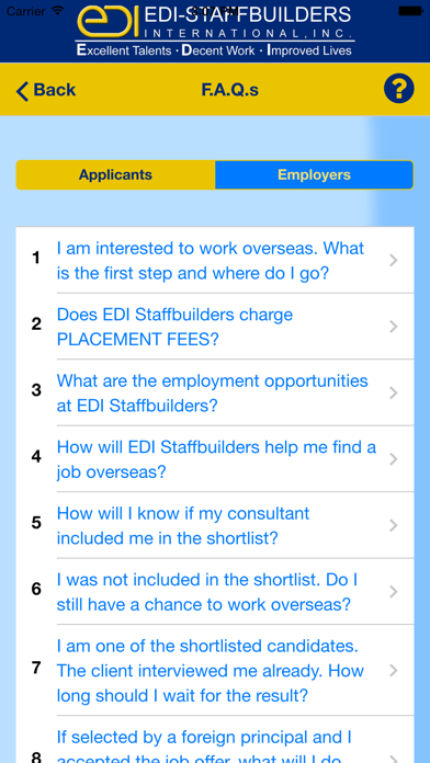 The EDI App is EDI-Staffbuilders International’s free recruitment and business tool that can be used to submit and process overseas job applications, inquiries on Services, follow-ups on status and Updates. The EDI App can also be used to download the latest worldwide job openings, get connected with EDI’s Facebook, Twitter, Podcast, and Youtube Channel. Through the EDI App, one can read News, interesting features and business-related articles of EDIZine, EDI-Staffbuilders International’s official electronic magazine.