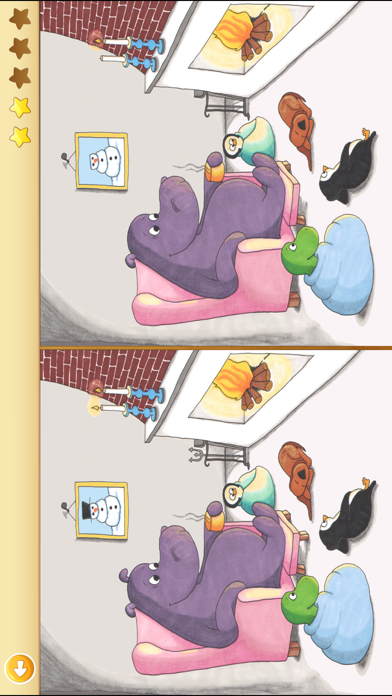 Follow Flippo and his friends on an epic adventure! ***** This game is a hand-drawn find the differences game. Challenging for the entire family! Suitable for children but we promise that it can be real tricky for adults as well. Flippo is a purple skinned hippo with a turtle as his best friend. Together with him you get to experience difference adventures with multiple levels presented in narrative form. Follow Flippo on a pirate treasure hunt, build a rocket and go to space, snowball fights in winter landscape or visit animals at the farm. See how many stars you manage to collect per adventure! Works perfectly to play on your own or sit in group with your children or friends and try to find the differences. The game is free and it’s up to you if you want to buy more adventures! Good luck :) Full Game = NO Ads & NO In-App purchases