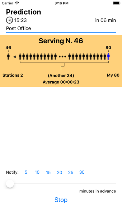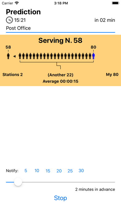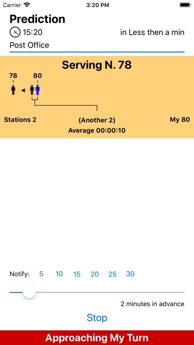 Queue Predictor lets you predict, when you are in a queue, when will be your turn. It is useful in many situations such as in a queue at the post office or similar places serving people using a progressive numeric ticket call. EFFECTIVE Queue Predictor allows you to go elsewhere with your ticket number and know when your turn is approaching, to be back in time for your turn (based on a statistical prediction) Queue Predictor automatically stores data about any place you stay in a queue and when you come back Queue Predictor has stats data about the place and is able to start predict your turn immediately as soon as you input your ticket number, the number currently served and the number of stations serving people. EASY TO USE Queue Predictor use a graphic display, showing the queue, to visualize your position and when will be your turn. When you are in a queue waiting for your turn that never comes, it is even fun to use, watching the graphical queue advance as the real one FEATURES • Track mode (to record times) and predict mode to predict queue flow when you are away from the queue • When you already used a queue it is able to predict your turn immediately (it remembers stats of the place) • Allows to keep data (average time) of different places • Can manage changing of number of stations serving • Can notify when is your turn also in background • Editable average time value for a place and weight of previous average in the stats • Shows graphically how your queue advances both in Track mode and in Predict mode • Works both on iPhone and iPad (on iPad both in Portrait and Landscape) • Optimized for iOS 12 requires iOS 9 minimum