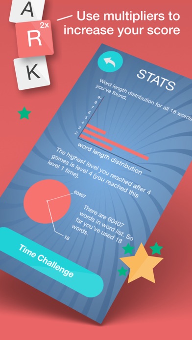 Swipe to link words and bonus letters to score points before time runs out! New letters drop in as you add words and convert to arrows that can't drop below the blue line or its game over! Test your skill and reaction time in this fast paced game of skill with 60 levels to complete or play against the clock to see the highest level you can achieve before the time runs out. - Two clever games in one to keep your brain challenged for hours!
