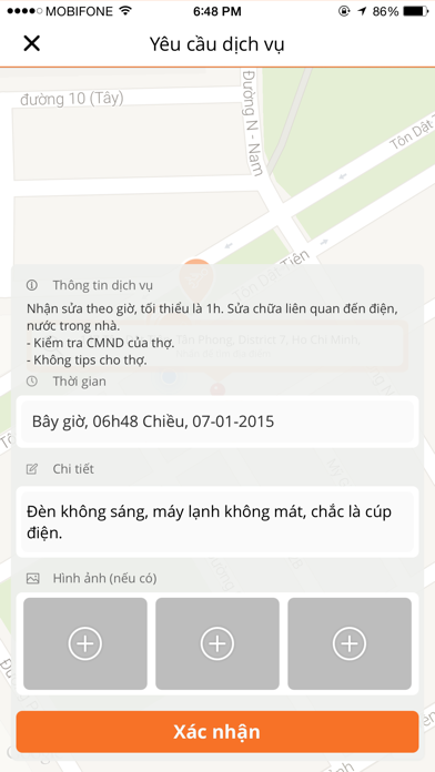 Ứng dụng gọi giúp việc đầu tiên tại Việt Nam. Gọi dịch vụ lau nhà, sửa điện nước, bảo trì máy lạnh, giặt ủi chỉ qua vài cú chạm. Dịch vụ hiện có tại TP.HCM và Hà Nội: - Lau nhà, dọn dẹp - Sửa điện, nước, máy nước nóng, máy lạnh, máy giặt - Bảo trì máy lạnh, bơm gas máy lạnh - Giặt ủi Vì sao nên dùng Taske.me? Nhanh chóng: ứng dụng tự chọn người giúp việc gần nhà bạn nhất và đến trong vòng 15 phút. An toàn: tất cả đối tác đều được kiểm tra kỹ lưỡng về chuyên môn, nhân thân, thông tin hiện rõ trên ứng dụng và phải trình chứng minh nhân dân khi vào nhà Tiện lợi: ngồi ở nhà đặt qua ứng dụng, theo dõi dịch vụ đang đến trên bản đồ Tiết kiệm: giá phải chăng, dịch vụ lau nhà từ 50.000đ / giờ. Yên tâm: giá được hiện rõ và đối tác sẽ xác nhận lại trước khi bắt đầu dịch vụ, biên nhận sẽ được gửi đến email. Hotline: 1900 1766. Email: [email protected]