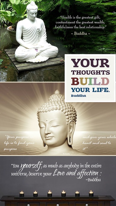 Lord Gautama Buddha wallpapers with quotes on karma, anger, love, life happiness, peace and meditation. Free 100+ HD collection of Buddhist religious quotes wallpapers for iPhone and iPad. Features: ● 100+ Motivational & Inspirational quotes from the Buddha. ● Beautiful and relaxing photos of Buddha & landscapes. ● Share on Facebook, Twitter and more... ● All for free. NO In-Apps..!!! A Must-Have App for Every Buddhist! App that gives you a stronger and happier spirit every day and night. Great way to learn about the life of the Buddha. There are many quote collections about Gautama Buddha, which you can easily understand only by browsing pictures.