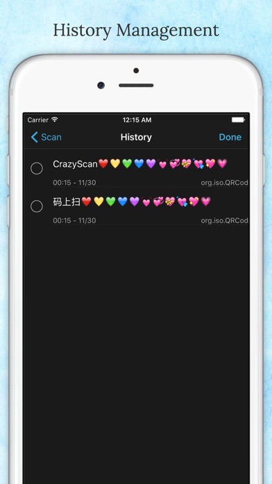 CrazyScan supports scan of all standard 1D and 2D code types – QR, Aztec, UPC, EAN13, EAN8, Code39, Code93, Code128, PDF417, ITF14, DataMatrix and so on. It is the easiest and most convenient Code Reader for you. 【FEATURES】 ● The fastest Code Reader - Scans with Dual Scan Core and gives the result very fast. You can also copy and paste or import a QR Code image to the app at anytime and get the result. - It works whether there is network or not. - Multiscan allows you to scan a number of QR codes continuously and shows the results swiftly. - Flash light helps you to scan easily in the dark. ● iOS 9 Spotlight Search - Use Spotlight to search for content of Scan and open it directly in its Detail Page. ● 3D Touch feature for iPhone 6s and iPhone 6s Plus - Quick Actions from the iPhone Home screen: Import a code image from album, Multiscan and Manage History. ● History management - Saves scan history automatically for management. 【FEEDBACK】 - App feedback:About- Feedback - Official QQ Group:475041343 - Wechat account:vDreamerTeam - Weibo:@vDreamerTeam