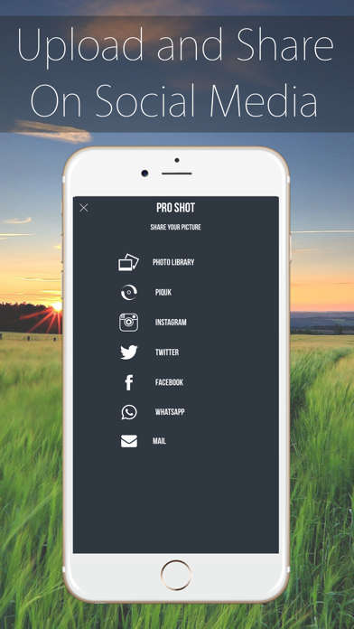IMPRESS YOUR FRIENDS Use Pro Shot to take your photos to the next level within seconds! Pro Shot is filled with amazing effects that can be layered, adjusted, and stacked onto your photo to create out-of-this-world masterpieces. Perfect for turning the most boring pictures into pure awesomeness! - Custom camera controller, customizable on its layout, with live Tint, Temperature and Exposure features - Photo adjustment tools: Brightness, Contrast, Saturation, Exposure - Take a picture, pick a photo from Library or use the random background image from the Home screen - Awesome set of Filters (build with Apple Core Image framework), like Instant, Chrome, Vignette, Process, Sepia, and many others. - Nice set of Effects: Bloom, Gloom, Pixellate, Pinch, Hue, Spot, Highlight, Posterize, Bump and Splash - Already localised for English and Italian languages (you can easily add extra languages to translate the app while resigning it, the User Guide in the package explains how to make it) - Blur tool, with Circle, Band and Normal options - Crop editor, with pre-made settings and free hand cropping tool - Tone Curve - Stickers, Frames and Textures (some free, some paid, to be unlocked by IAP) - Borders is a feature that allows you to crop your image into a square size for Instagram and PIQUK sharing, plus adding a nice set of background to -your photos - Drawing tool, unleash your creativity and draw colourful sketches over your pictures - Text tool, with customisable fonts and colors, you can add multiple labels over your images - Multiple sharing options: Save to Photo Library or Custom Album, Piquk, Instagram, Mail, Twitter, Facebook and WhatsApp - Nice modern User Interface - Instagram button on the Home screen (you can link it to your app's Instagram page) - Automatically save original photo into camera roll (after you take a picture with camera) - Save images to custom Pro Shot album (customizable) - Tell a friend option: send an email to your friends to promote the app ***DOWNLOAD NOW***