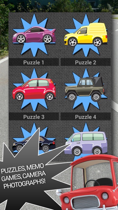 Everybody loves a nice car. Now you can check out some awesome photographs of cool looking (and not so cool looking) cars, as well as try out our 6 challenging puzzle games, memo game and our funny car cam! Yes, it features: *** Puzzles with several different motives *** Fast cars, old cars, sports cars and more in our photo section *** Be in the mirror, on a school bus or in a regular car in our funny cam mode *** A memory game that will let your brain do a little work. Check it out today, after all, it`s free!
